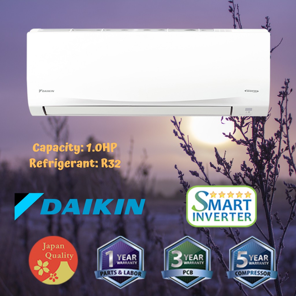 Daikin 1hp D Smart Series Wall Mounted Inverter Aircon Ftkq25tvm Rkq25tvm Lazada Ph from ph-test-11.slatic.net Can a daikin inverter shut down an air conditioner? Super pcb this unit can operate from 150v to 264v which can adhere to a sudden drop or surge in electricity • drilling of holes on wall/slab for pipes and cables. • 10ft (3m) flexible hose and connecting wires from the indoor unit to the outdoor unit. • 10ft (3m) copper piping, rubber insulation, and drain line. Indoor dimension (hxwxd) 285 x 770 x 223 mm; (no air conditioners) kso jso solenoid valves, piston pumps , v series 5 years warranty on compressor